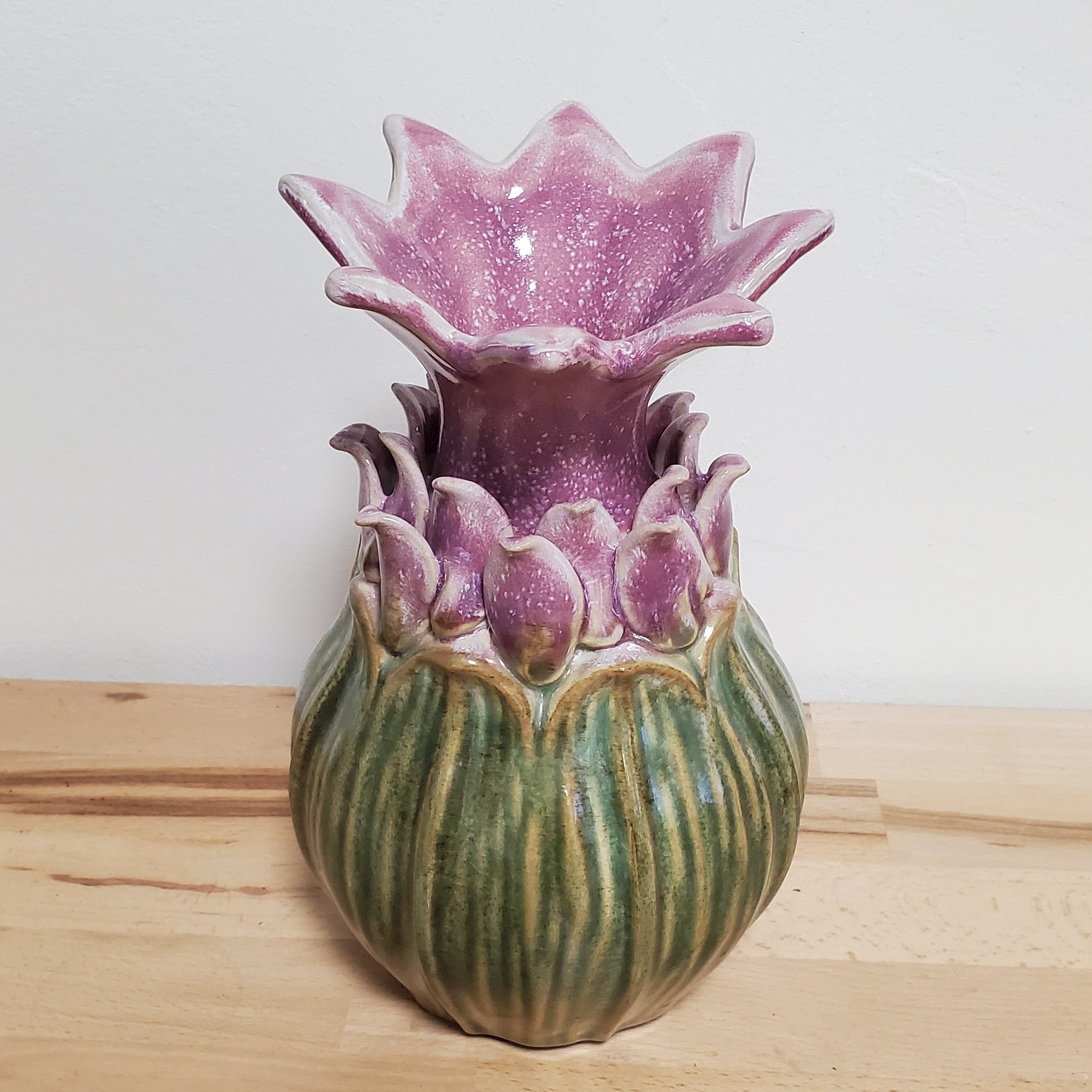 Lachsfarbene Keramik Vase, "Boyang". Innen glasiert. 25cm hoch, 16cm breit, Öffnung 3cm